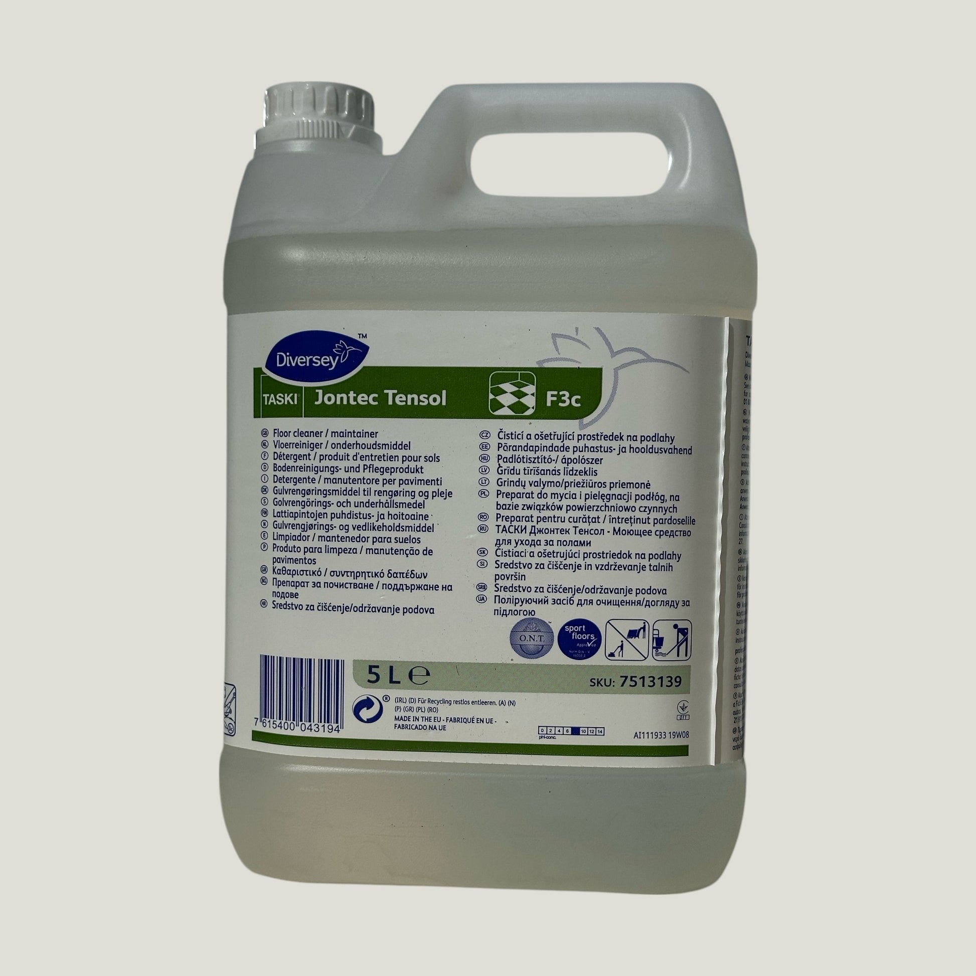 TASKI Jontec Tensol F3c is een vloerreiniger en -onderhouder die speciaal is ontwikkeld voor het reinigen en onderhouden van zowel beschermde als onbeschermde waterbestendige harde vloeren. Het product reinigt effectief zonder een opeenhoping van lagen achter te laten, waardoor het ideaal is voor gebruik op diverse vloertypes, waaronder poreuze oppervlakken zoals rubber.