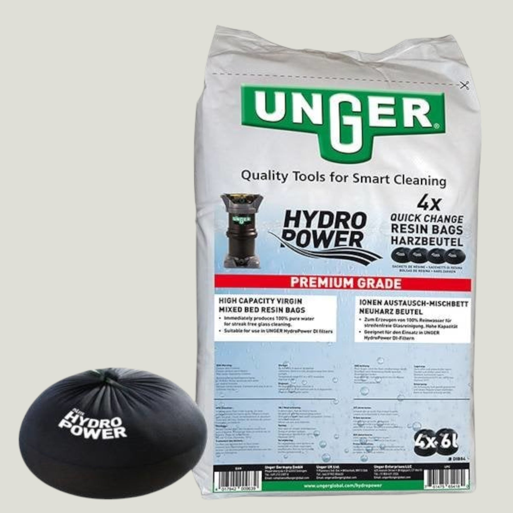 Optimaliseer uw osmose-reinigingssysteem met de Unger nLite HydroPower Harsvulling – speciaal ontworpen voor maximale waterzuivering en topprestaties. Deze hoogwaardige harsvulling wordt geleverd in een handige verpakking van 4 stuks in zak, perfect afgestemd op de Unger HydroPower DI-filtersystemen.